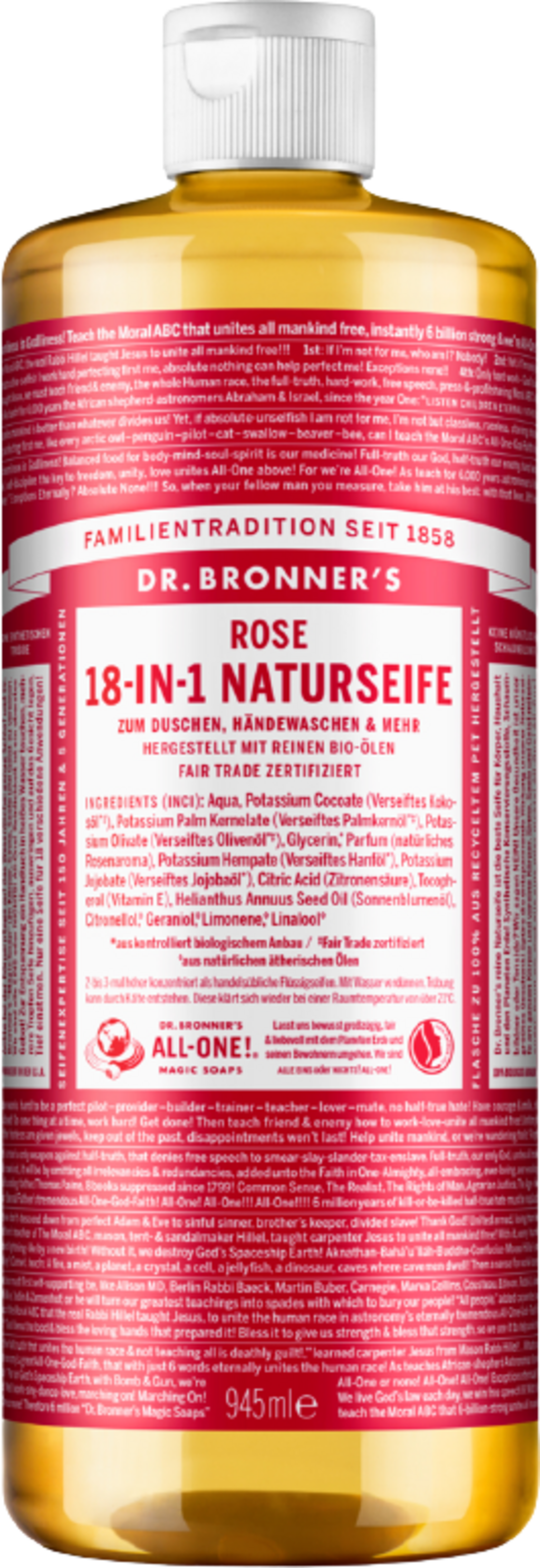 Dr. Bronner's 18in1 luonnonsaippua, ruusu, 945 ml
