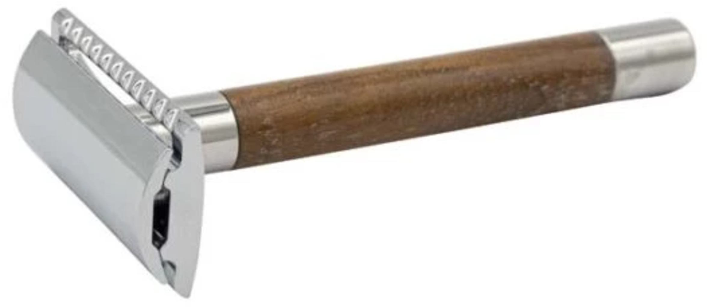 Tämä muoviton partakone sopii erinomaisesti sekä miehille että naisille. Se on tehty käsin kiillotetusta puusta ja ruostumattomasta teräksestä, mikä antaa sille tyylikkään ilmeen. Luonnollinen ja laadukas karvanpoistotyökalu.