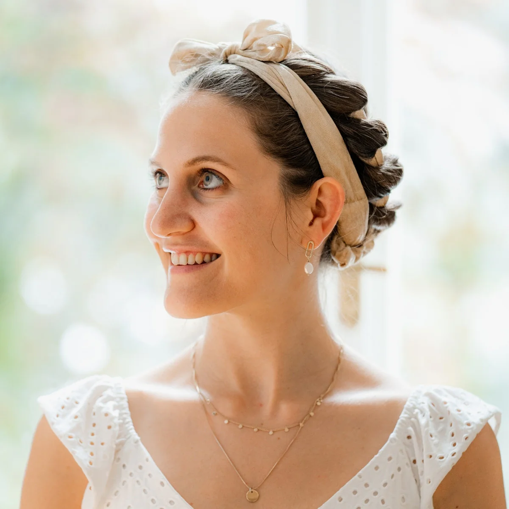 - Ylitä kiharanauha takaraivolla ja sido päät solmulla.