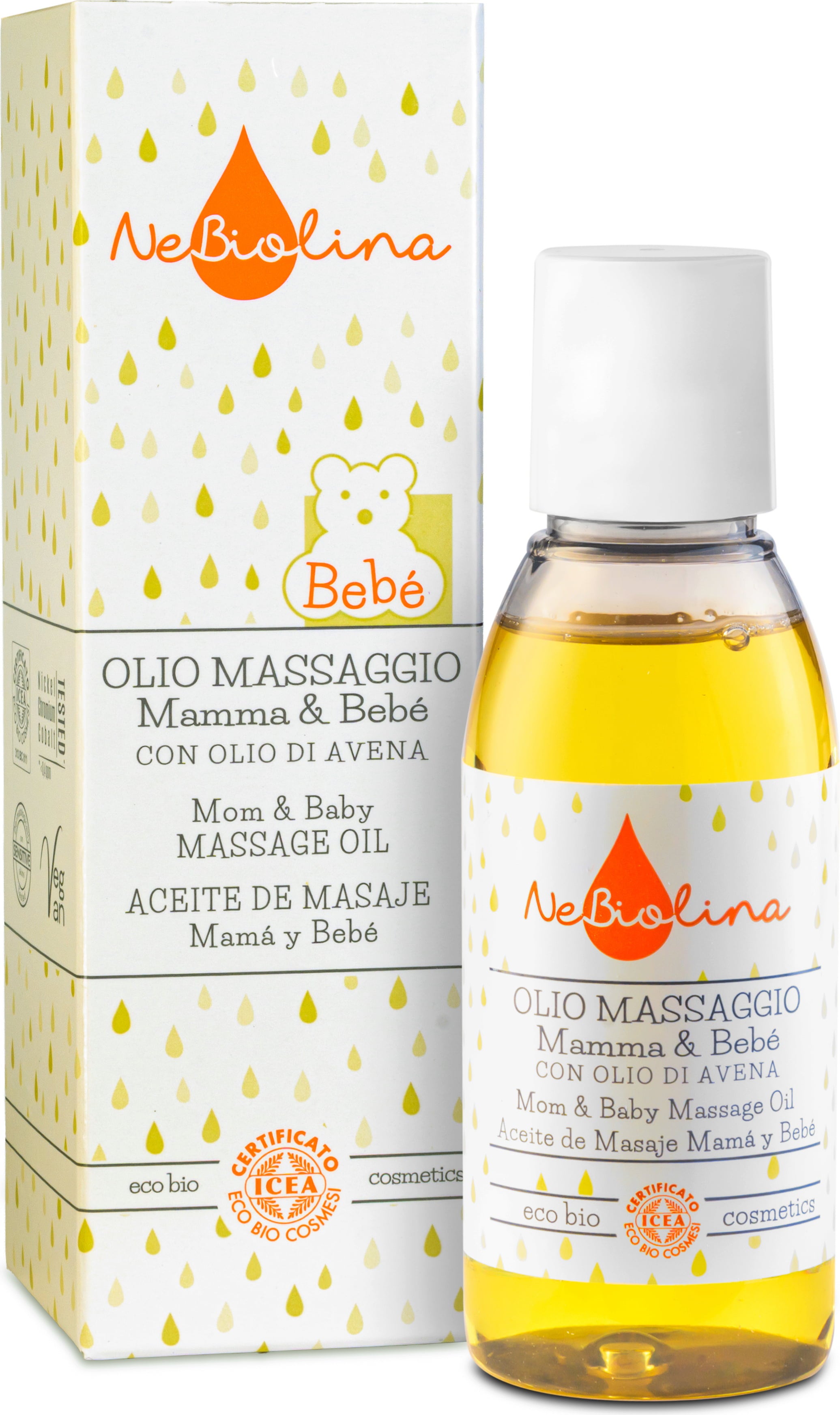 Sisältämänsä kauraöljyn ansiosta tämä öljyseos on ihanteellinen vauvan ihonhoitoon. Se sopii kuitenkin mainiosti myös äideille: olipa kyseessä raskauden aikana vatsan tai välilihan pehmentävä hieronta tai synnytyksen jälkeen.