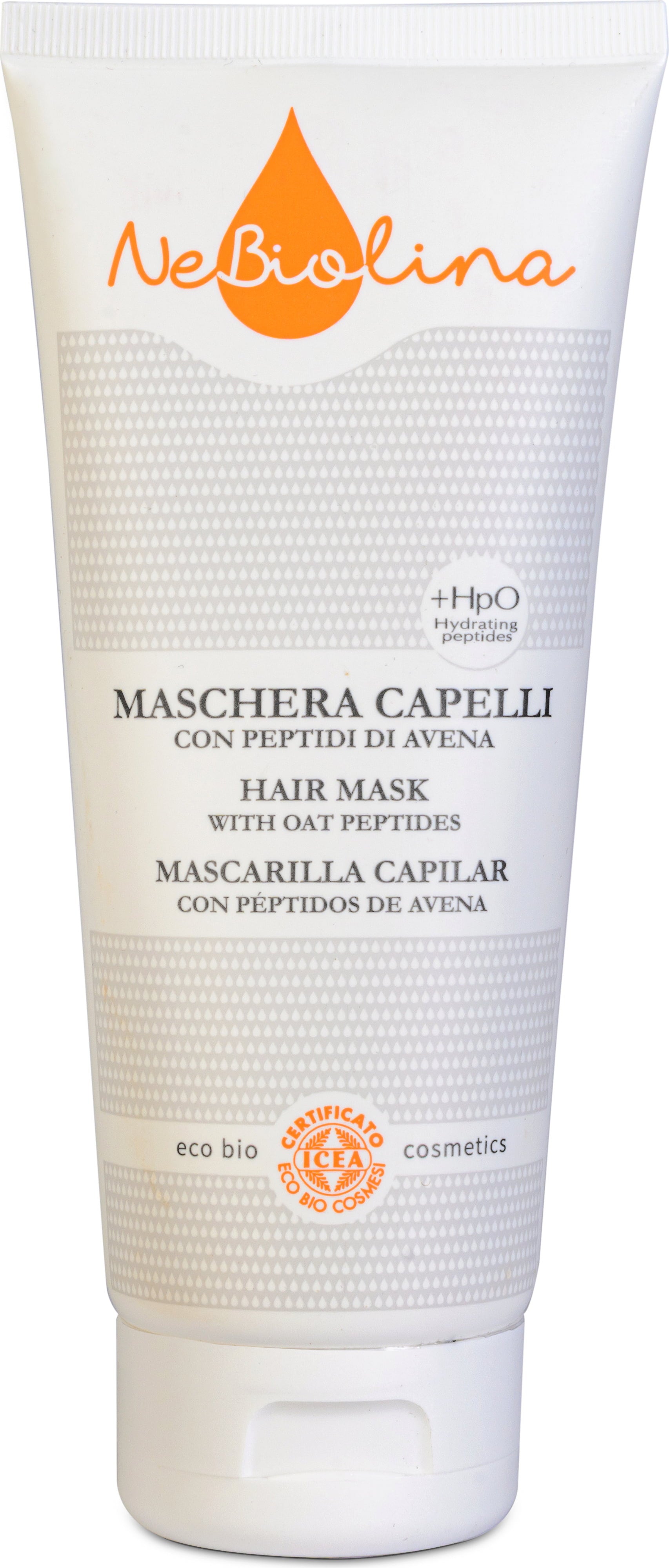 Tämä NeBiolinan hiusnaamio on luonnollisista ainesosista saatu tiiviste, joka sopii ihanteellieseti rasittuneiden ja kuivien hiusten hoitoon. Se sisältää kosteuttavia kaurapeptidejä, luonnollisia keramideja, jotka ehkäisevät huokoisuutta, sekä runsasantioksidanttista E-vitamiinia.