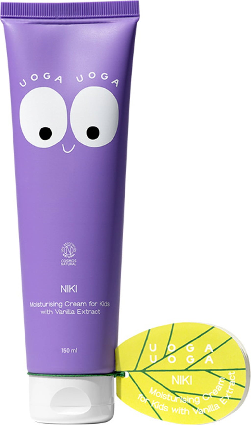 UOGA UOGA -hoitovoiteen upea koostumus antaa herkälle lasten iholle arvokasta kosteutusta ja tekee siitä pehmeän sileän. Uudistavat ja kosteuttavat ominaisuudet perustuvat erityiseen koostumukseen, joka sisältää aloe veran uutetta, vaniljan lisäaineen sekä sekoituksen auringonkukka-, jojoba- ja manteliöljyä. Lipidit muodostavat iholle suojakerroksen, joka vähentää kosteuden menetystä. Ihana vaniljan ja suklaan tuoksu hemmottelee rakkaasi aisteja ja täydentää iltarutiinin täydellisesti. Hauskojen tarrojen avulla lapset voivat luovasti tuunailla tuubia.