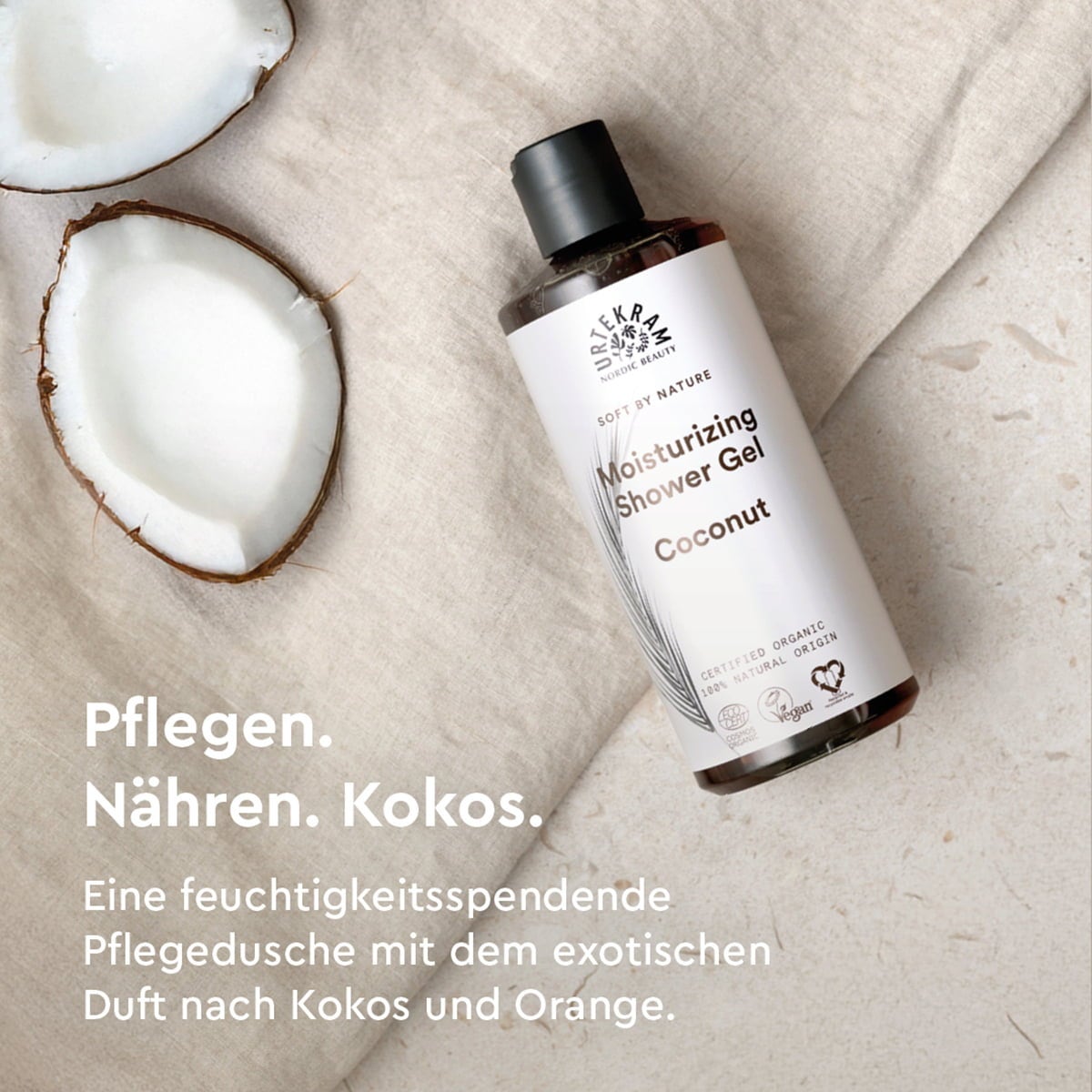 Tämä kookossuihkugeeli hemmottelee ihoa ja aisteja. Se sisältää luomukookosöljyn ja leväuutteiden ravinteita ja arvokkaita mineraaleja ja antaa pitkäkestoista kosteutta. Luonnollinen kookostuoksu vie ajatukset yhdessä appelsiiniöljyn kanssa valkoiselle Karibian hiekkarannalle. Rentouttava elämys.