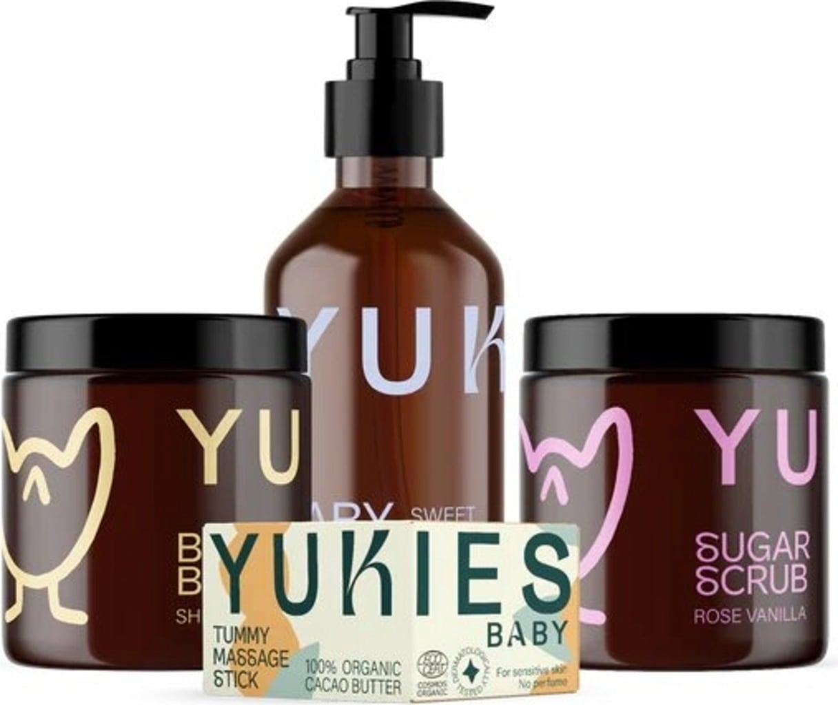 Yukiesin korkealaatuinen lahjasetti tarjoaa kaiken, mitä vauvat ja äidit tarvitsevat yhteisiin rentoutumishetkiin. Rakkaudella koottu lahjasetti sisältää neljä vegaanista, sertifioitua, käsintehtyä ja monikäyttöistä tuotetta.